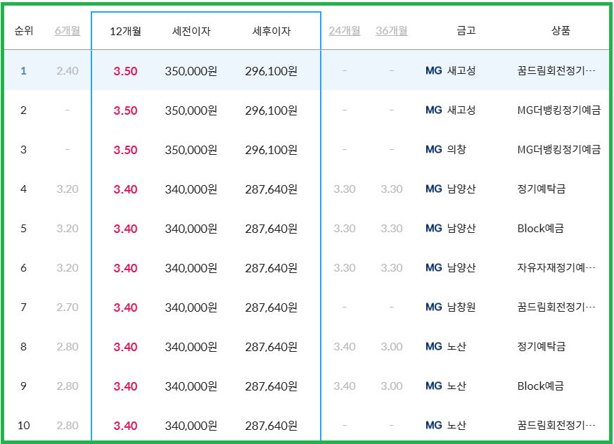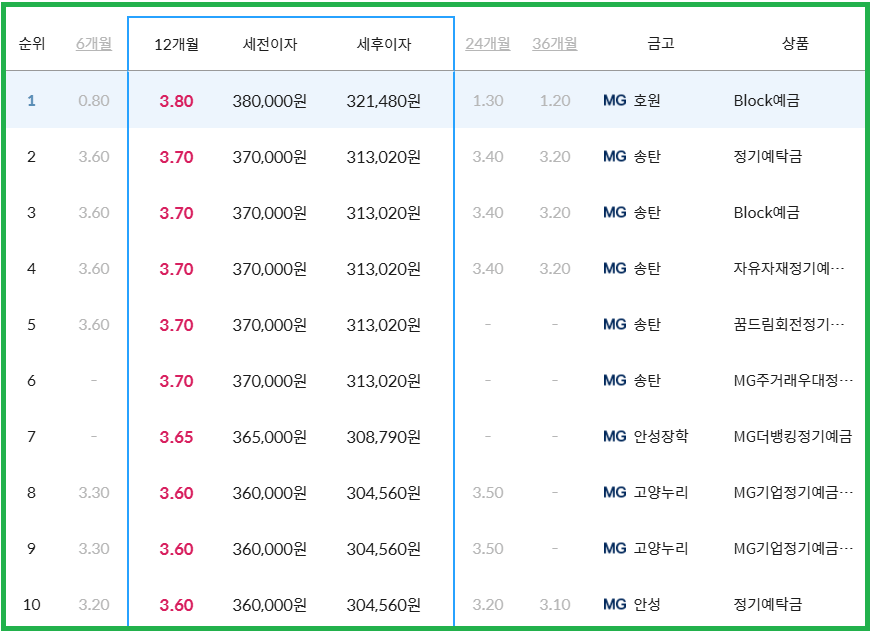 12월 새마을금고 예금금리 가장 높은 곳에 대해 6~36개월에 해당하는 상품에 대해 정리했습니다.