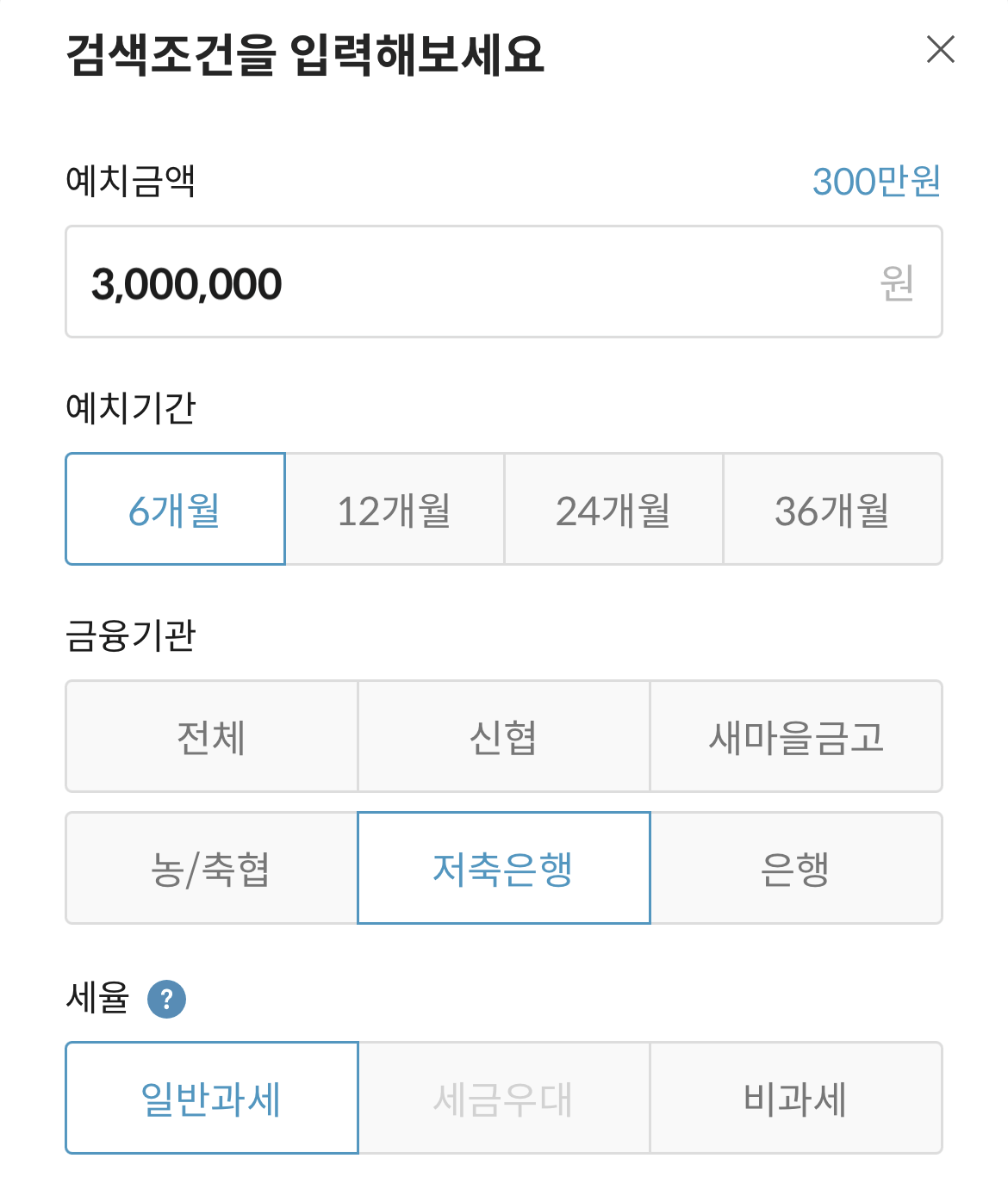 아래 검색조건에서 예치금액 및 예치기간을 설정하셔서 세후 이자를 확인해 보세요!